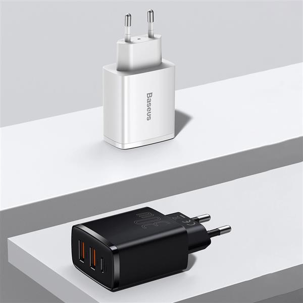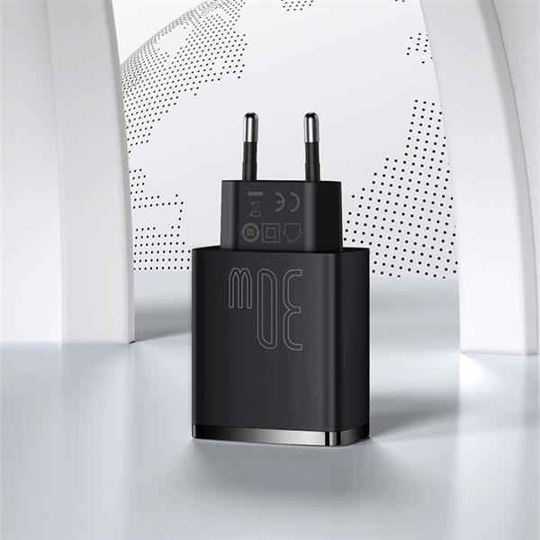 Baseus Compact szybka ładowarka sieciowa 2x USB / USB Typ C 30W 3A Power Delivery Quick Charge czarny (CCXJ-E01)