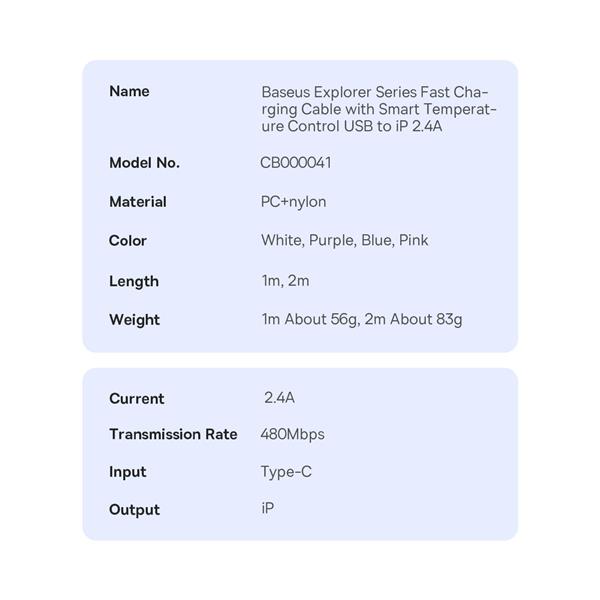 Baseus Explorer Series kabel przewód USB – Lightning 2,4A 2 m biały (CATS010102)