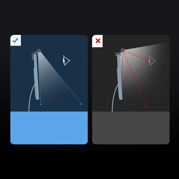 Doskonale wyprofilowana lampa o zakrzywionej oprawie kieruje strumień światła pod kątem 45 stopni, bezpośrednio na blat i znajdujące się na nim przedmioty, a nie na ekran komputera. Chroni to przed powstawaniem nieprzyjemnych dla oczu odblasków.