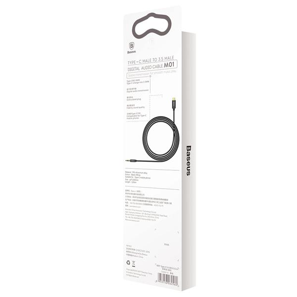 Baseus kabel audio stereo przejściówka AUX 3,5 mm mini jack – USB Typ C do telefonu tabletu 120cm czarny (CAM01-01)