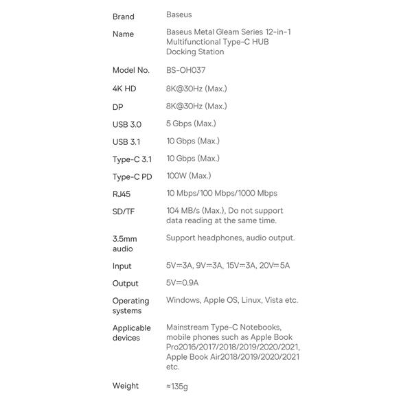 Stacja dokująca Baseus Metal Gleam Series 12-in-1 Multifunctional Type-C HUB Space Gray
