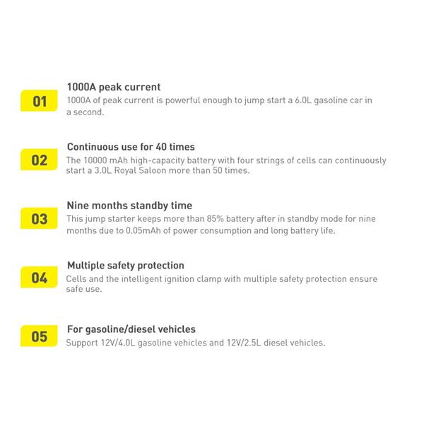 Bezpieczeństwo to priorytet. Dlatego, jeżeli chodzi o obsługę rozrusznika to korzystanie z modelu marki Baseus pozwala na stabilne, bezproblemowe użytkowanie urządzenia, które zapewniają wbudowane funkcje: