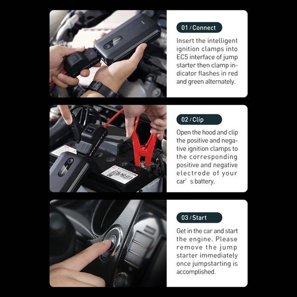 Baseus powerbank Power Starter Jump Starter urządzenie rozruchowe booster 10000mAh 12V (1000A / 500A) + kable krokodylki czarny (CGNL020101)