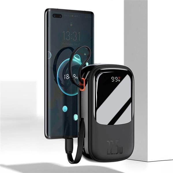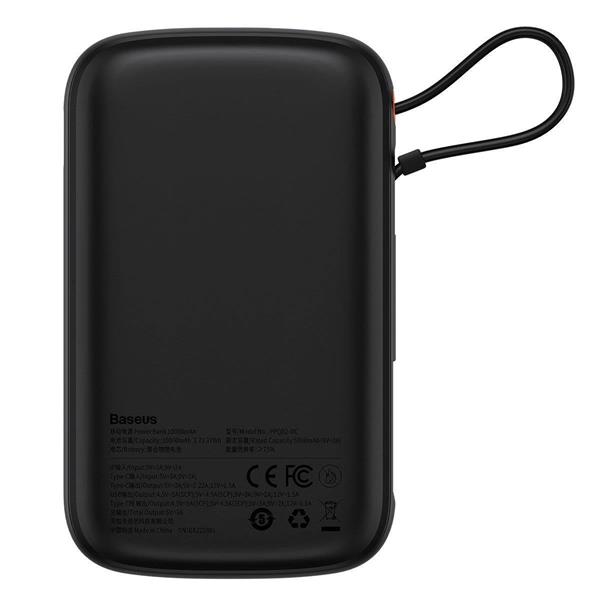 Baseus Qpow Digital Display powerbank z szybkim ładowaniem 10000mAh 22,5W QC/PD/SCP/FCP z wbudowanym kablem USB-C czarny