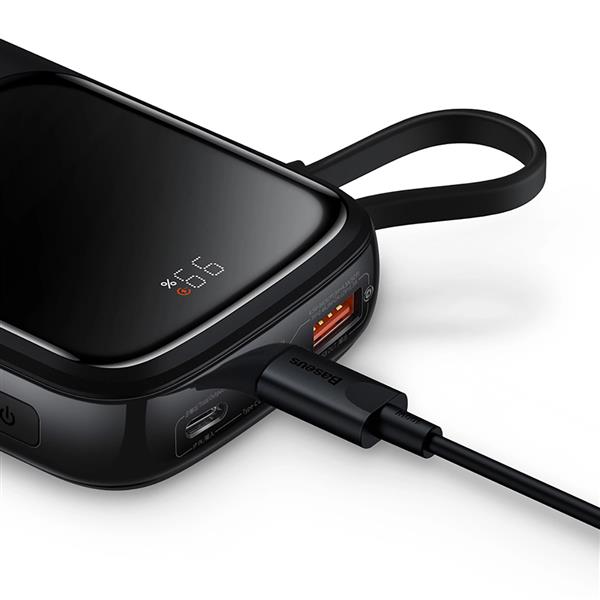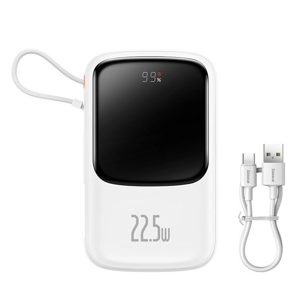 Baseus Qpow powerbank 10000mAh wbudowany kabel USB Typu C 22,5W Quick Charge SCP AFC FCP biały