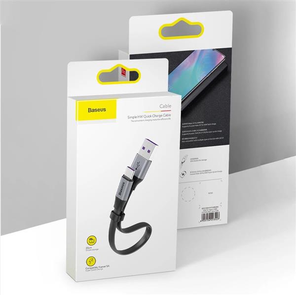 Baseus Simple – krótki kabel USB Typ C ze wsparciem technologii Huawei SuperCharge 5A: