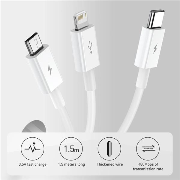 Baseus Superior 3w1 kabel USB – Lightning / USB Typ C / micro USB (ładowanie 3,5 A / przesyłanie danych 480 Mbps) 1,5 m