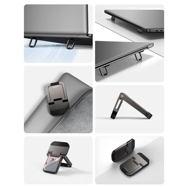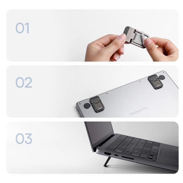 Uniwersalne akcesorium znanej i cenionej marki Baseus przyda się każdemu użytkownikowi laptopa. Zestaw lekkich i kompaktowych samoprzylepnych podstawek pozwala na korzystanie z urządzenia w wygodny sposób w każdych warunkach – wystarczy je przykleić i rozłożyć.