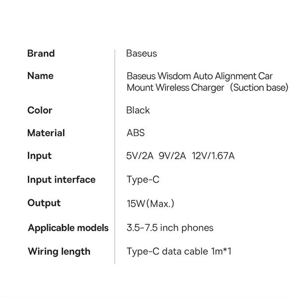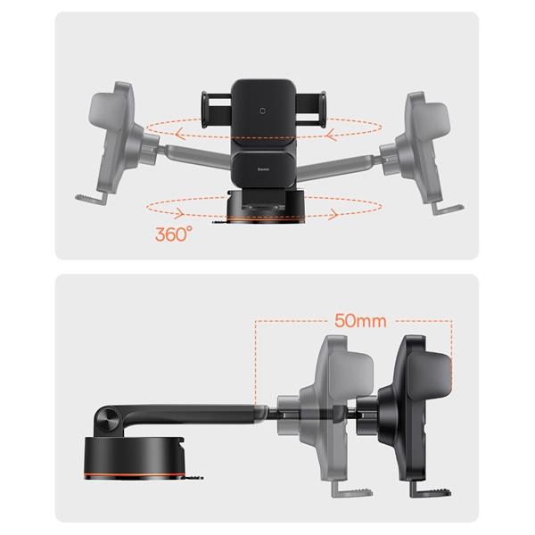 Baseus Wisdom ładowarka indukcyjna uchwyt samochodowy do telefonu na deskę rozdzielczą (przyssawka) czarny