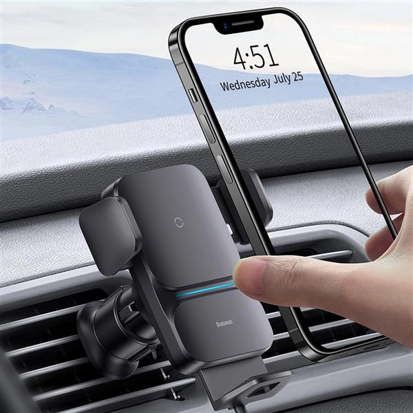 - Inteligentna ładowarka na Twoich usługach – uchwyt Baseus dysponuje funkcją ładowarki bezprzewodowej. Wystarczy podłączyć ją do źródła zasilania przy pomocy kabla USB / USB-C. Dzięki wydajnej cewce indukcyjnej i nowoczesnym podzespołom elektronicznym, automatycznie dobierze ona parametry prądu do potrzeb ładowanego telefonu i błyskawicznie go naładuje