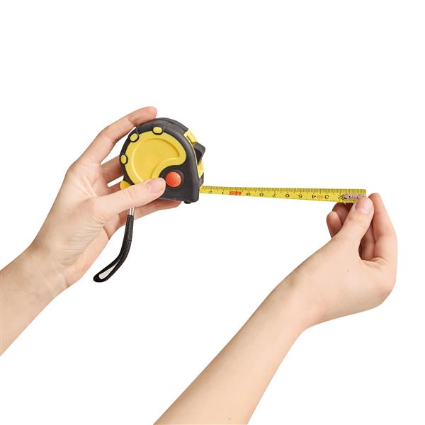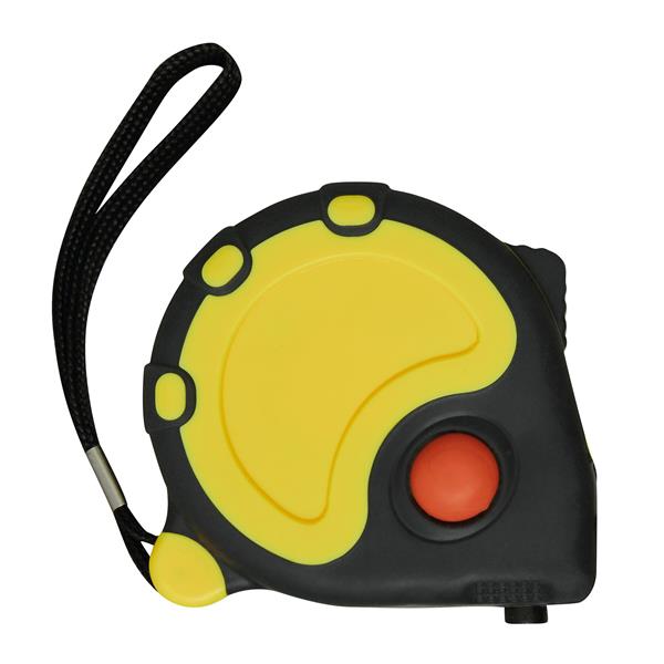 Taśma miernicza BASIC I z żółtą skalą w cm, z klipsem, pętelką na rękę. Powierzchnia obudowy gumowana, automatyczny stoper, 3 m.