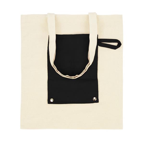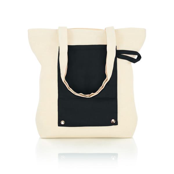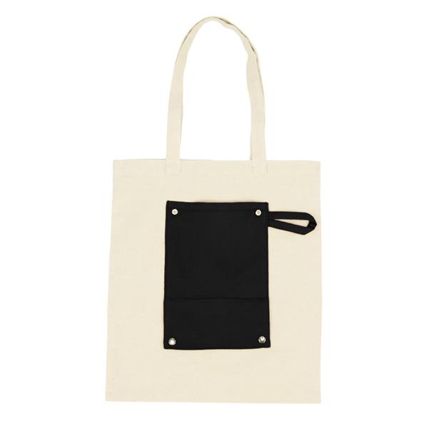 Bawełniana torba na zakupy z długimi uchwytami, składana, przednia kieszeń