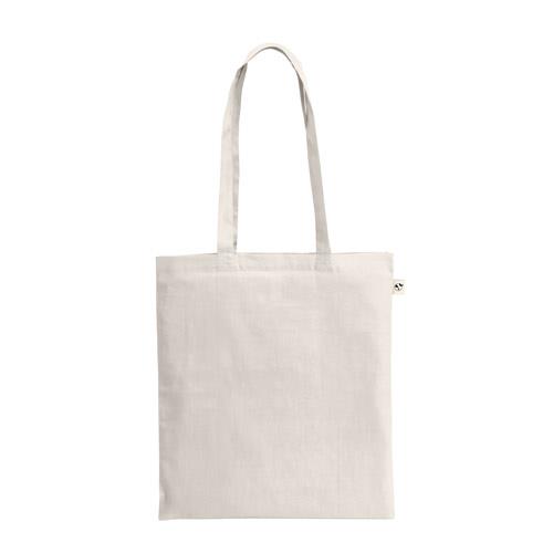 Torba wykonana w 100% z bawełny pochodzącej z recyklingu (180 g/m2), z uchwytami o długości 65 cm. Bawełna z recyklingu jest jednobarwna i niebarwiona. Surowiec jest używany w swojej oryginalnej formie i kolorze, bez użycia barwiących lub wybielających chemikaliów, co przyczynia się do zmniejszenia wpływu na środowisko. Jednolity kolor uzyskuje się poprzez wybór przędzy z recyklingu o tym samym odcieniu, mogą pojawić się z tego powodu pewne różnice kolorystyczne. 380 x 420 mm