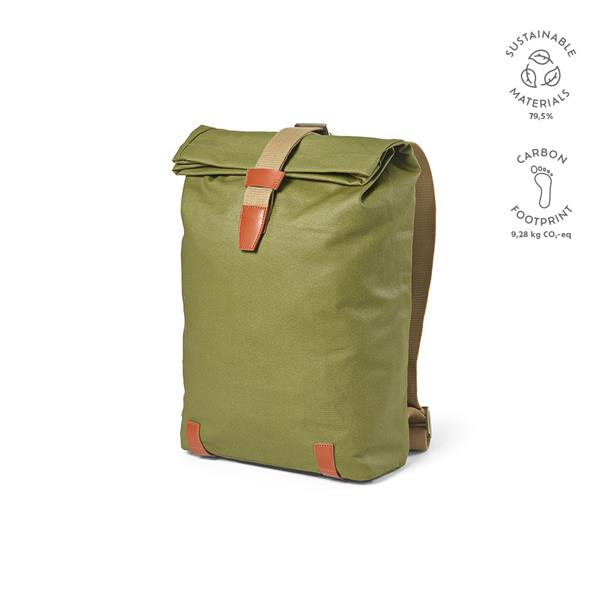 Ten wodoodporny plecak jest zgodny z zasadami zrównoważonego rozwoju: wykonany z bawełnianego płótna pochodzącego z recyklingu z powłoką PU (340 gr) i detalami z PU pochodzącymi z recyklingu. Z wyściełaną przegrodą na laptopa (17″) i 2 wewnętrznymi kieszeniami. Dostarczany w indywidualnej bawełnianej torbie z recyklingu.