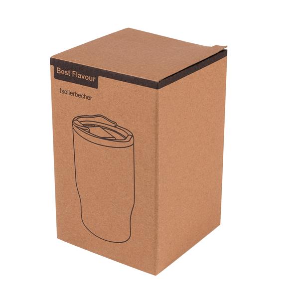 Kubek termiczny BEST FLAVOUR z podwójną ścianką. Wewnątrz i na zewnątrz ze stali nierdzewnej. Przezroczysta, zabezpieczająca, przykręcana plastikowa pokrywka ze zintegrowanym otworem do picia, pojemność ok. 350 ml.