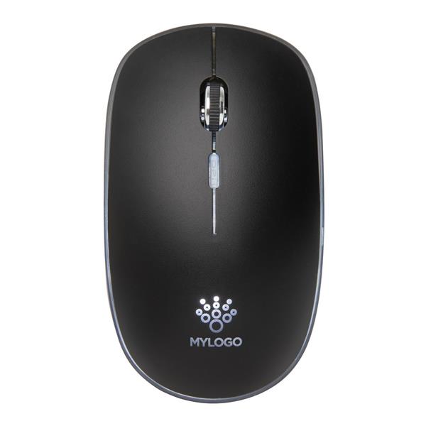 Bezprzewodowa mysz komputerowa, szybkie połączenie 125 Hz, przycisk do zmiany czułości działania, wbudowany akumulator litowo polimerowy o pojemności 300 mAh, ponowne ładowanie w 3 godziny, nadajnik USB w komplecie, grawer ukazuje podświetlaną powierzchnię, ślad węglowy produktu: 0,71 kg CO2