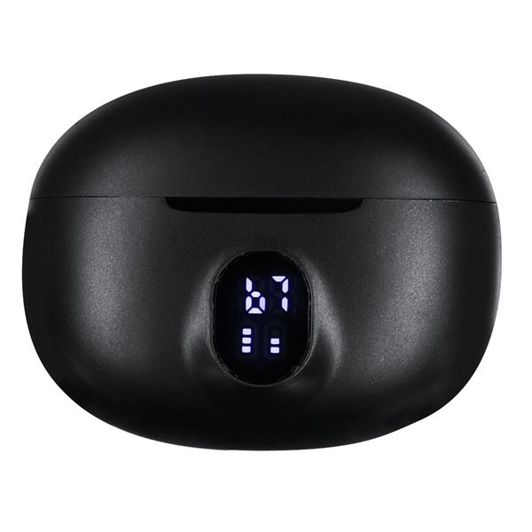 Bezprzewodowe słuchawki douszne BT 5.3 z systemem aktywnej redukcji szumów (ANC) oraz funkcją redukcji szumów otoczenia podczas rozmów (ENC), bateria słuchawek 30 mAh, posiadają etui ładujące słuchawki 230 mAh z cyfrowym wyświetlaczem, czas pracy: ok. 3-4h, kabel USB-C w komplecie, produkt wykonany z ABS