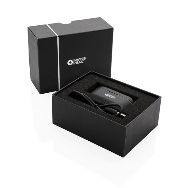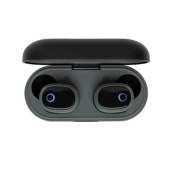 Bezprzewodowe słuchawki douszne TWS (True Wireless Stereo), BT 5.0, wykonane z ABS, funkcja odbierania połączeń, muzyka oraz rozmowy telefoniczne stereo, etui 500 mAh pełniące funkcję stacji ładującej w komplecie, akumulator słuchawek 50 mAh umożliwia odtwarzanie muzyki do 3 godzin, ponowne naładowanie za pomocą etui w 2 godziny, zasięg do 10 metrów, różne rozmiary nakładek dousznych w komplecie, ślad węglowy produktu: 0,7 kg CO2