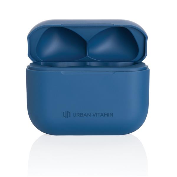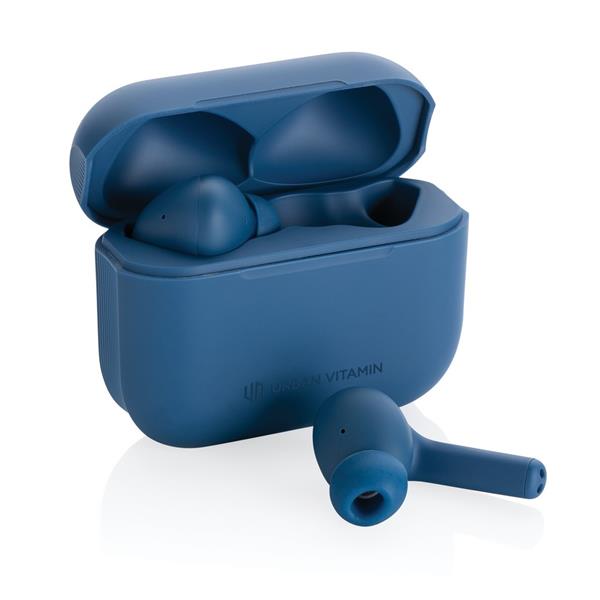 Bezprzewodowe słuchawki douszne z systemem aktywnej redukcji szumów (ANC), mocny i czysty dźwięk, poziom redukcji szumów do 25 dB, wodoodporne IPX4 (całkowita ochrona przed spryskiwaniem i zachlapaniem wodą z różnych kierunków z natężeniem do 10 litrów na minutę), dotykowy panel sterowania, wbudowany mikrofon, funkcja odbierania połączeń, do 5 godzin odtwarzania na jednym ładowaniu, etui ładujące zapewnia 20 godzin odtwarzania, nie zawiera PVC, opakowanie nie zawiera plastiku, ślad węglowy produktu: 0,98 kg CO2