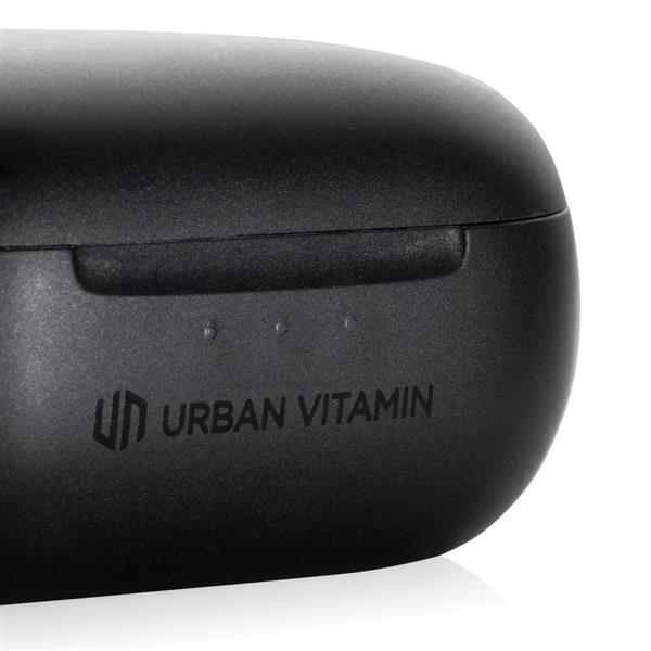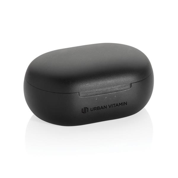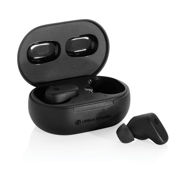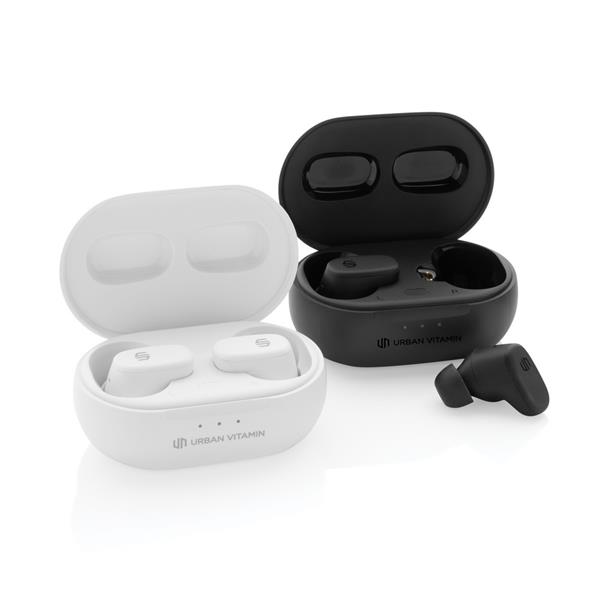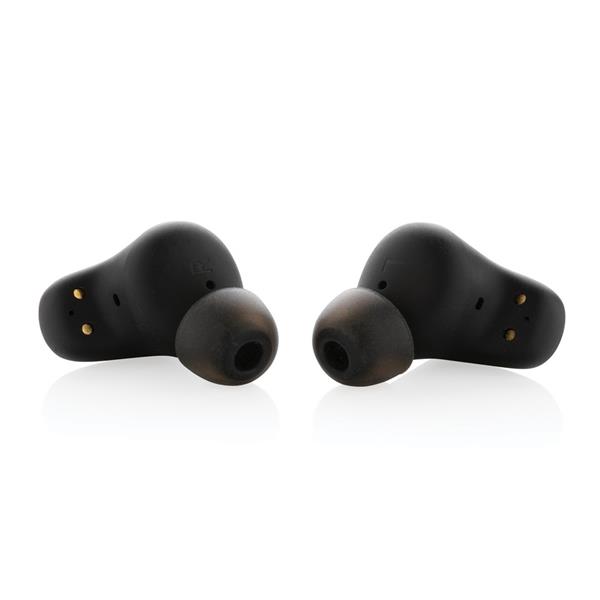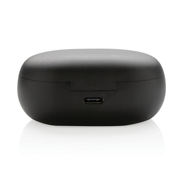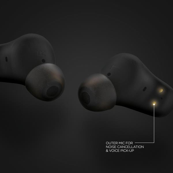 Bezprzewodowe słuchawki douszne z systemem aktywnej redukcji szumów (ANC), funkcja redukcji szumów otoczenia (ENC), poziom redukcji szumów do 40 dB, wodoodporne IPX5 (całkowita ochrona przed strumieniem wody płynącej z różnych kierunków z wydajnością do 12,5 litra na minutę), dotykowy panel sterowania, do 5 godzin odtwarzania na jednym ładowaniu, etui ładujące zapewnia 20 godzin odtwarzania, etui można ładować za pomocą kabla USB typu C lub ładowarki bezprzewodowej, nie zawiera PVC, opakowanie nie zawiera plastiku, ślad węglowy produktu: 0,87 kg CO2