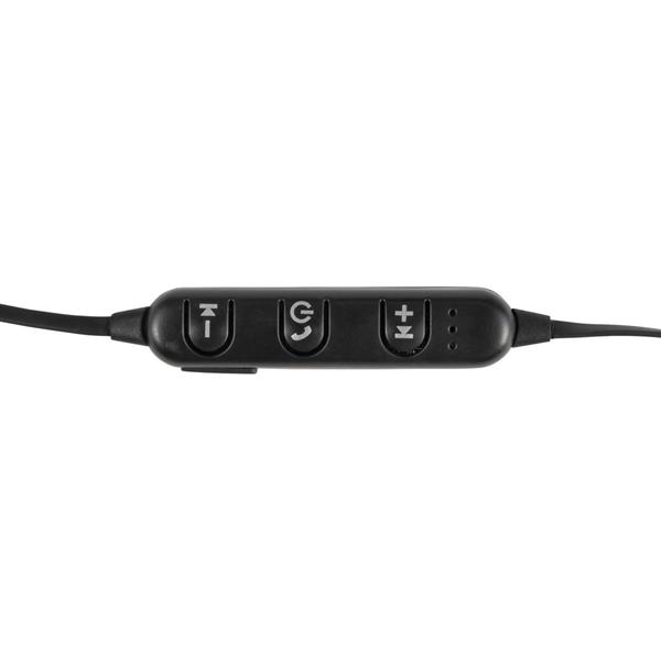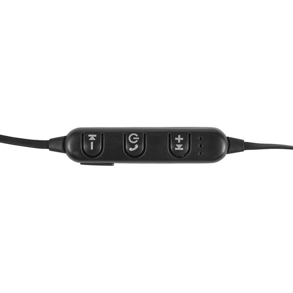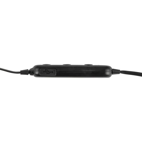 Bezprzewodowe słuchawki douszne (kabel 55 cm) w etui, funkcja odbierania połączeń, panel regulacji, kabel micro USB w komplecie