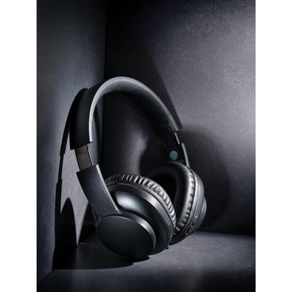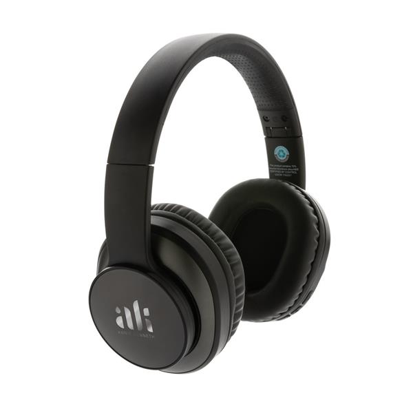Nauszne słuchawki bezprzewodowe BT 5.3, składane, wykonane z aluminium z recyklingu z certyfikatem RCS i ABS, całkowita zawartość materiałów z recyklingu obliczona na podstawie wagi całkowitej przedmiotu: 70%, wbudowany mikrofon, funkcja odbierania połączeń, wbudowany akumulator o pojemności 600 mAh umożliwia odtwarzanie muzyki do 15 godzin, ponowne ładowanie w 2 godziny, zasięg do 10 m, kabel z TPE i PET z recyklingu z certyfikatem RCS w komplecie, w pudełku z certyfikatem FSC® mix, nie zawiera PVC, ślad węglowy produktu: 1,11 kg CO2