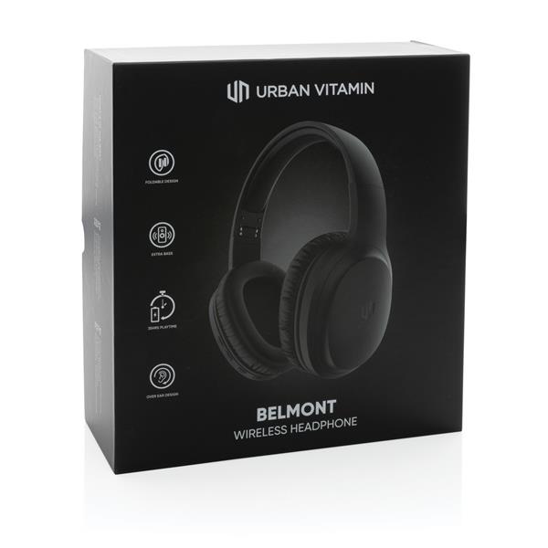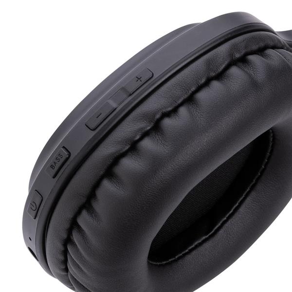 Nauszne słuchawki bezprzewodowe, składane, przycisk wzmacniający basy z boku słuchawek, wbudowany mikrofon, funkcja odbierania połączeń, komfortowe nauszniki, czas odtwarzania na jednym ładowaniu do 35 godzin, nie zawiera PVC, opakowanie nie zawiera plastiku, ślad węglowy produktu: 2,72 kg CO2