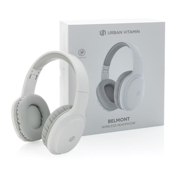 Nauszne słuchawki bezprzewodowe, składane, przycisk wzmacniający basy z boku słuchawek, wbudowany mikrofon, funkcja odbierania połączeń, komfortowe nauszniki, czas odtwarzania na jednym ładowaniu do 35 godzin, nie zawiera PVC, opakowanie nie zawiera plastiku, ślad węglowy produktu: 2,72 kg CO2