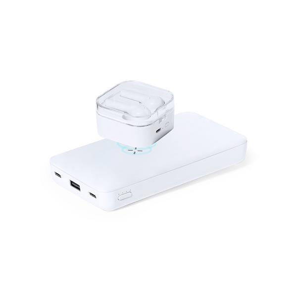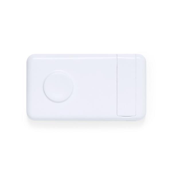 Bezprzewodowy power bank 5000 mAh, ładowarka bezprzewodowa 15W, działa z telefonami posiadającymi możliwość ładowania indukcyjnego, 4 diody wskazujące poziom naładowania, 2 cewki ładowania bezprzewodowego (15W, 2,5W), 2x wejście/wyjście USB typu C 5-12V/3-1.5A, wyjście USB 5-12V/3-1.5A, stojak na telefon