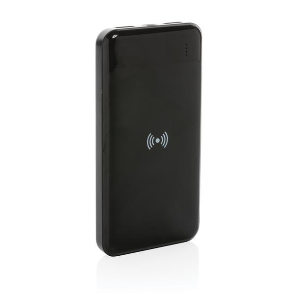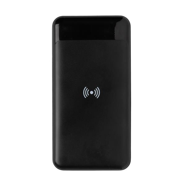 Power bank 8000 mAh, ładowarka bezprzewodowa 5W, w pełni naładowany, wbudowany akumulator litowo polimerowy klasy A pozwala na naładowanie telefonu do 4 razy, obudowa wykonana z ABS pochodzącego z recyklingu, posiadają certyfikat RCS (Recycled Claim Standard), który jest stosowany gdy produkt jest wykonany częściowo lub w całości z materiałów pochodzących z recyklingu, bezprzewodowe ładowanie jest kompatybilne ze wszystkimi urządzeniami posiadającymi możliwość ładowania indukcyjnego, wejście typu C 5V/2A, wejście micro USB 5V/2A, wyjście bezprzewodowe 5W, 2 x wyjście USB 5V/2A, kabel z TPE z recyklingu w komplecie, nie zawiera PVC, ślad węglowy produktu: 3,42 kg CO2