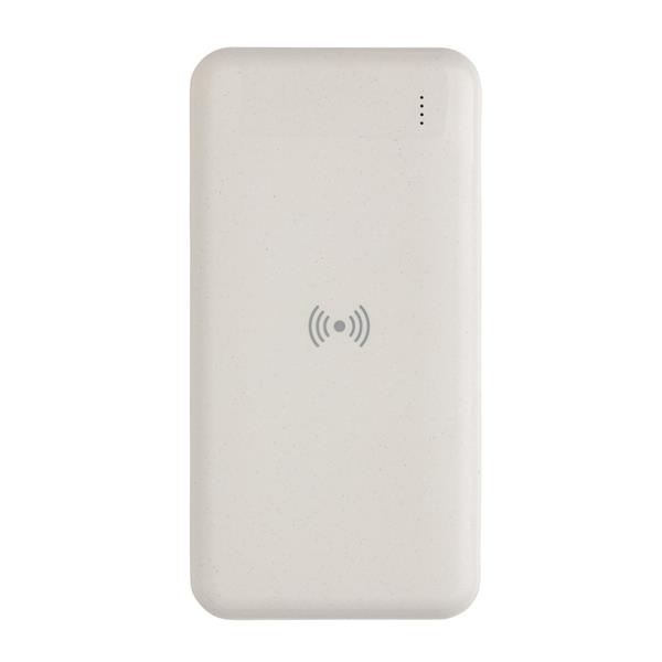 Power bank 8000 mAh, ładowarka bezprzewodowa 5W, w pełni naładowany, wbudowany akumulator litowo polimerowy klasy A pozwala na naładowanie telefonu do 4 razy, obudowa wykonana z ABS pochodzącego z recyklingu, posiadają certyfikat RCS (Recycled Claim Standard), który jest stosowany gdy produkt jest wykonany częściowo lub w całości z materiałów pochodzących z recyklingu, bezprzewodowe ładowanie jest kompatybilne ze wszystkimi urządzeniami posiadającymi możliwość ładowania indukcyjnego, wejście typu C 5V/2A, wejście micro USB 5V/2A, wyjście bezprzewodowe 5W, 2 x wyjście USB 5V/2A, kabel z TPE z recyklingu w komplecie, nie zawiera PVC, ślad węglowy produktu: 3,42 kg CO2