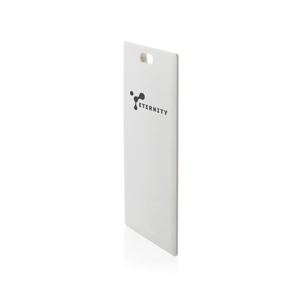 Bezprzewodowy wykrywacz kluczy, lokalizator, wykonany z ABS pochodzącego z recyklingu RCS, ma mniejszy wpływ na środowisko, ponieważ 40% jego całkowitej masy składa się z materiałów pochodzących z recyklingu, certyfikat RCS zapewnia w pełni certyfikowany łańcuch dostaw materiałów pochodzących z recyklingu, karta zapakowana w opakowanie upominkowe FSC® mix