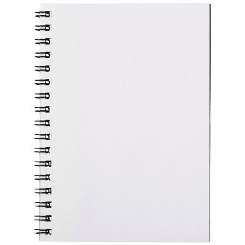 bialy z biala spirala, notatnik A6 Notes na spirali Desk-Mate® w formacie A6. Składa się z czystych kartek o gramaturze 80g/m2. Standardowo 50 kartek, dostępny również w wersji 100 kartek. Notatnik obłożony jest 500-mikronową, przezroczystą polipropylenową okładką (250g/m2).Długość: 14,8 cm Szerokość: 10,5 cm Wysokość: 0,5 cm