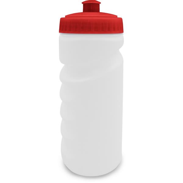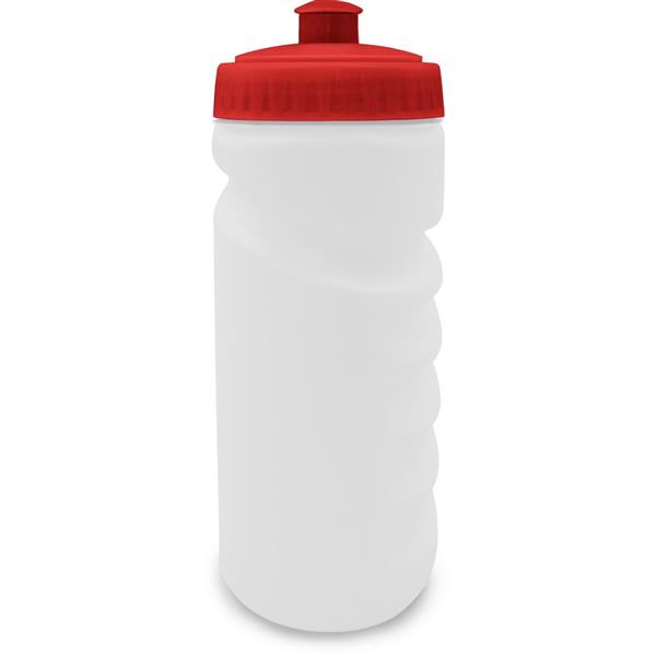 Bidon 500 ml z kolorową zakrętką, posiada zamknięcie w postaci dzióbka ułatwiającego picie oraz profilowanie, dzięki któremu bidon lepiej leży w dłoni, produkt wykonany z PE i PP