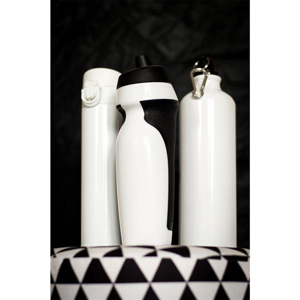Bidon aluminiowy o pojemności 800 ml, błyszczącej powierzchni, z karabińczykiem. Posiada szczelne zamknięcie typu leak proof zapobiegające wyciekaniu płynów. Nie zawiera BPA.