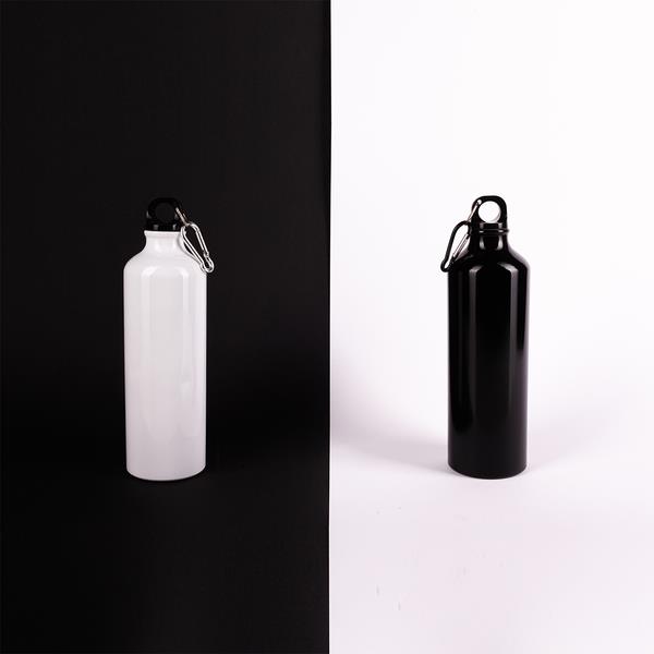 Bidon aluminiowy o pojemności 800 ml, błyszczącej powierzchni, z karabińczykiem. Posiada szczelne zamknięcie typu leak proof zapobiegające wyciekaniu płynów. Nie zawiera BPA.