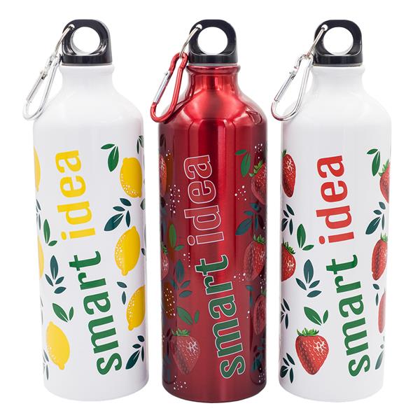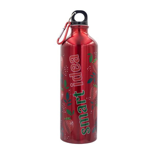 Bidon aluminiowy o pojemności 800 ml, błyszczącej powierzchni, z karabińczykiem. Posiada szczelne zamknięcie typu leak proof zapobiegające wyciekaniu płynów. Nie zawiera BPA.