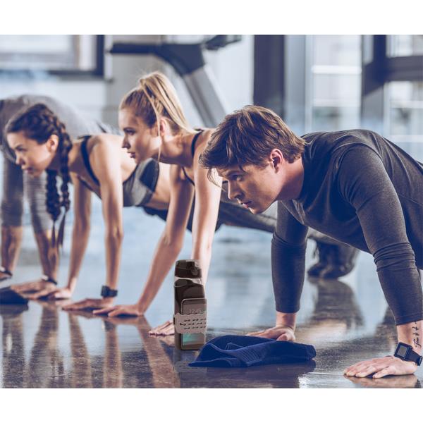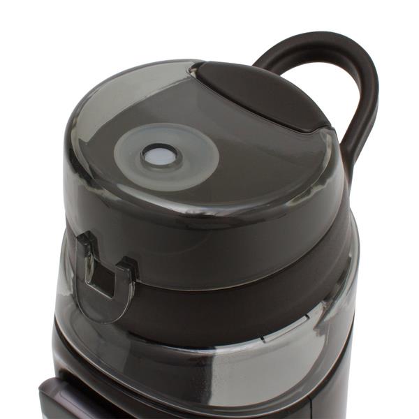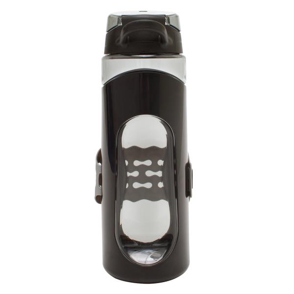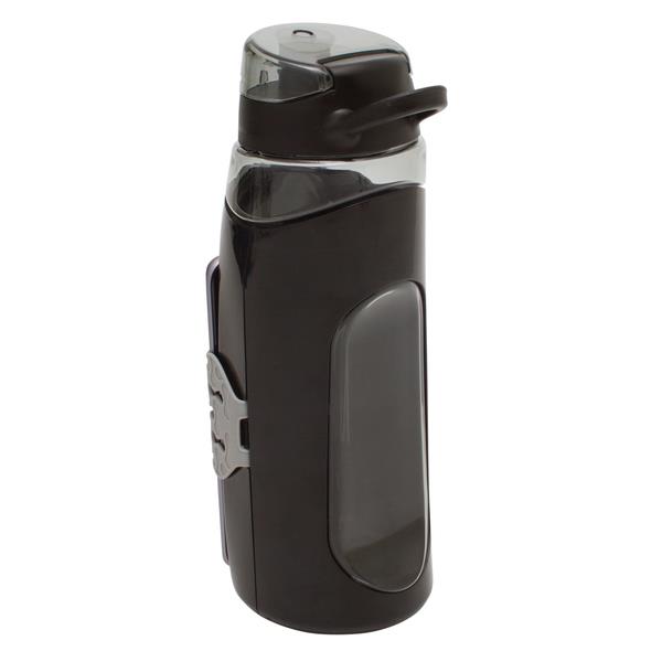 Szczelny i solidny bidon z uchwytem na telefon. Pojemność 850 ml. Posiada wysuwaną podstawkę oraz elastyczną opaskę silikonową gwarantującą stabilność telefonu po jego przymocowaniu do bidonu. Produkt przeznaczony dla ludzi, którzy kochając życie aktywne chcą zawsze być on line. Wykonany z Tritanu – tworzywa wolnego od BPA. Telefon nie jest dołączony.