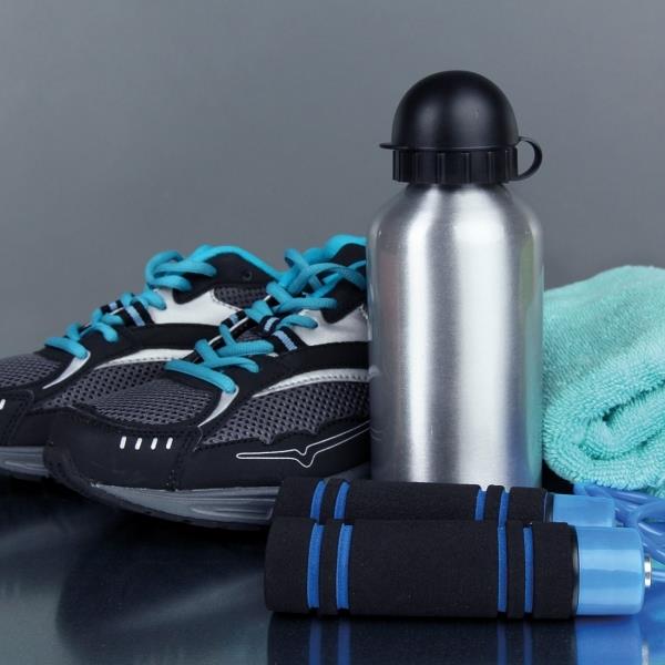Bidon metalowy CHARLOTTE o pojemności 600 ml, sportowym zamknięciem i metalicznej powłoce.