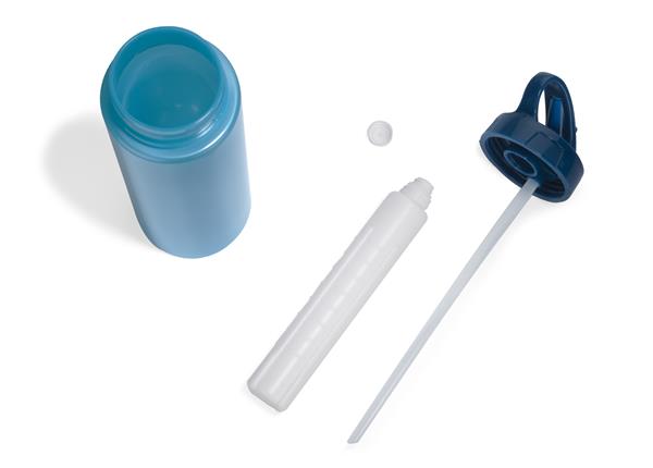 Bidon wyposażony we wkład chłodzący. Po napełnieniu bidonu bardzo zimną wodą kolor ścianek zmienia się na granatowy. Pojemność 700 ml wliczając wkład chłodzący. Pojemność użytkowa 600ml.