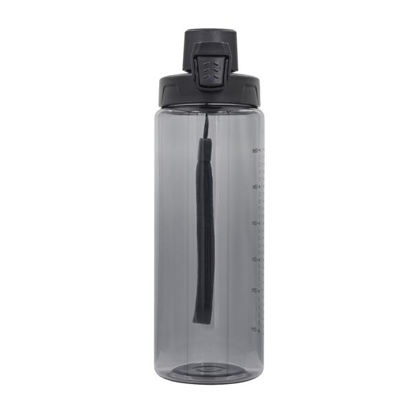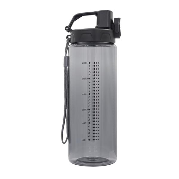 Bidon 700 ml wykonany z tritanu, wytrzymałego i przejrzystego tworzywa niezawierającego BPA. Bidon posiada miarkę, uchwyt na nadgarstek, funkcję podwójnego zabezpieczenia przed wylaniem wody – przycisk i haczyk. Co istotne, jest łatwy w myciu.