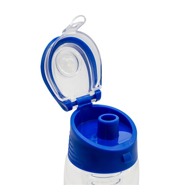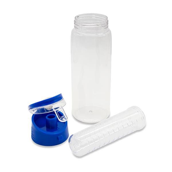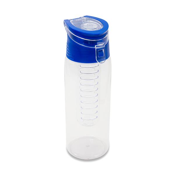 Lekki, szczelny bidon z solidnym zamknięciem, wyposażony w pojemnik na kawałki owoców lub miętę. Wykonany z tritanu – wytrzymałego, przezroczystego tworzywa niezmieniającego smaku napoju.