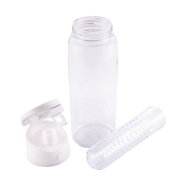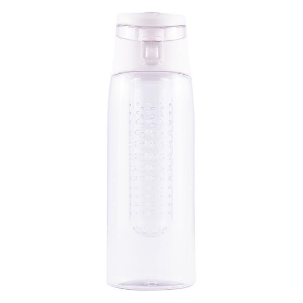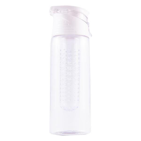 Lekki, szczelny bidon z solidnym zamknięciem, wyposażony w pojemnik na kawałki owoców lub miętę. Wykonany z PCTG (nie zawiera BPA) Zalewać płynem o maksymalnej temperaturze 60 stopni.