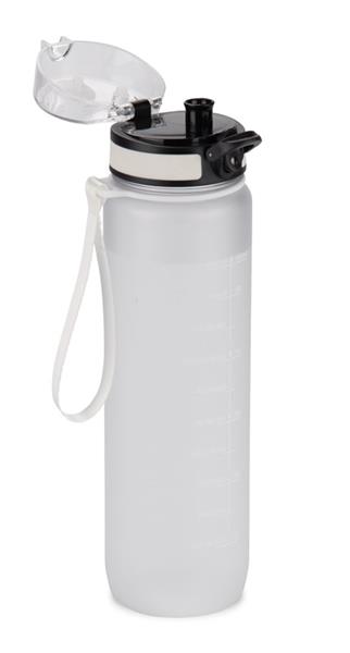 MOTIVA to praktyczna butelka z miarką i blokowanym ustnikiem, idealna do codziennego użytku w biurze, na eventach czy podczas aktywności fizycznych. Jej duża pojemność (1000 ml), wygodny pasek do noszenia i nowoczesny wygląd sprawiają, że świetnie sprawdza się jako nośnik marki – szczególnie w zestawach promocyjnych lub akcjach prozdrowotnych.