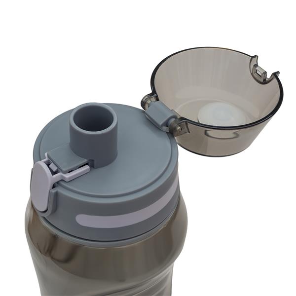 Bidon o pojemności 660 ml wykonany z tritanu. Bidon posiada uchwyt na nadgarstek, ergonomiczny kształt i łatwe otwieranie przy użyciu przycisku.