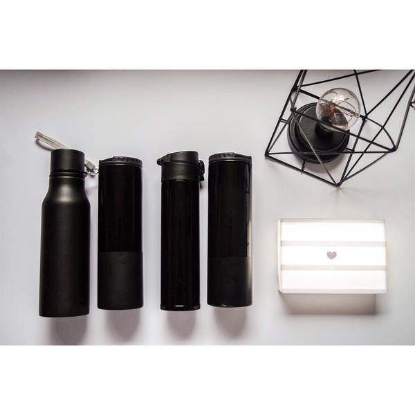 Szczelny bidon z uchwytem na nadgarstek, o pojemności 700 ml. Wykonany ze stali nierdzewnej 18/8. Posiada zamknięcie typu leak proof zapobiegające wyciekaniu płynów. Nie zawiera BPA.