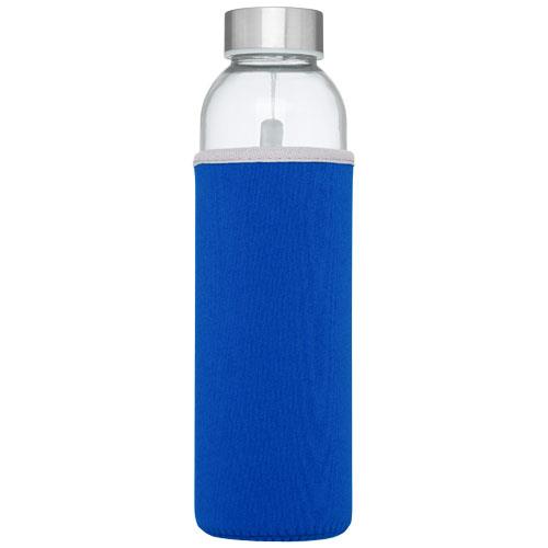 Bidon szklany Bodhi o pojemności 500 mlSzklana butelka z jednowarstwową ścianką i zakrętką. Zakrętka posiada pasek do łatwego przenoszenia oraz neoprenowe etui. Zalecana do zimnych napojów. Nie zamrażać, nie używać w kuchence mikrofalowej. Pojemność 500 ml. Zapakowane w pudełko podarunkowe. Wysokość: 22,1 cm