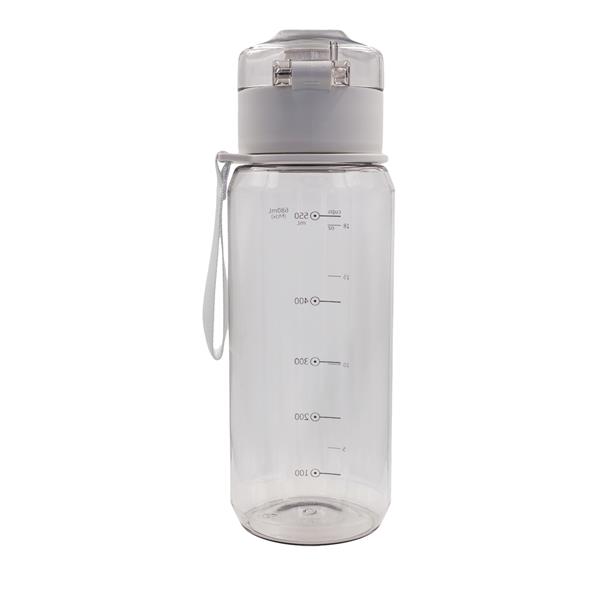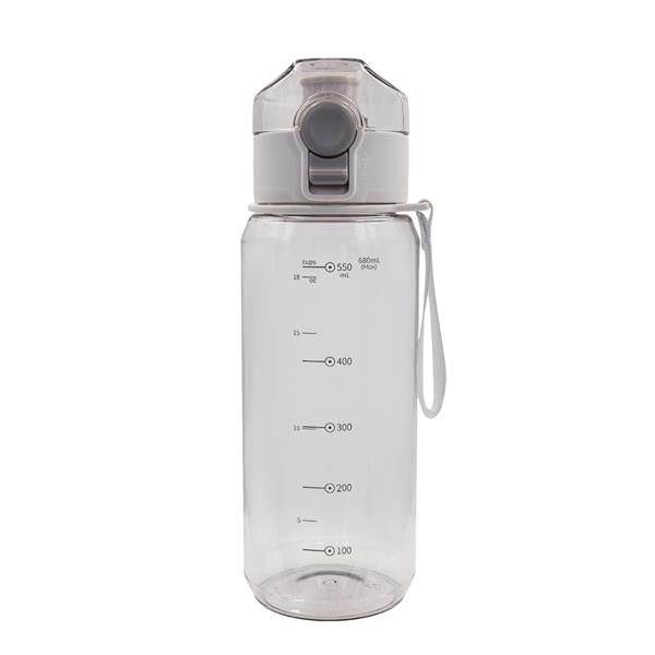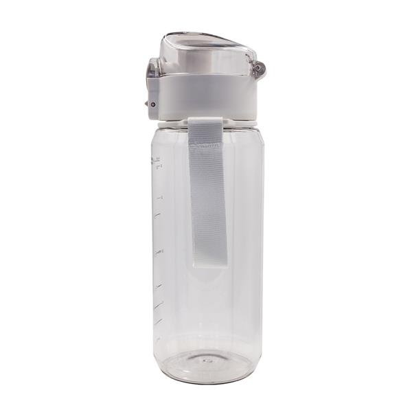 Szczelny Bidon 680 ml wykonany z tritanu. Posiada miarkę, uchwyt na nadgarstek, funkcję podwójnego zabezpieczenia przed wylaniem wody – przycisk i przesuwaną blokadę.