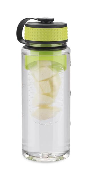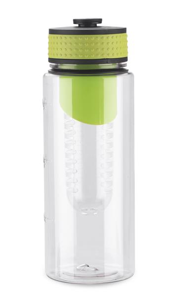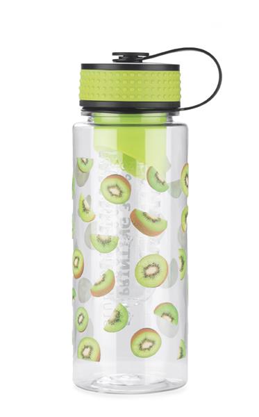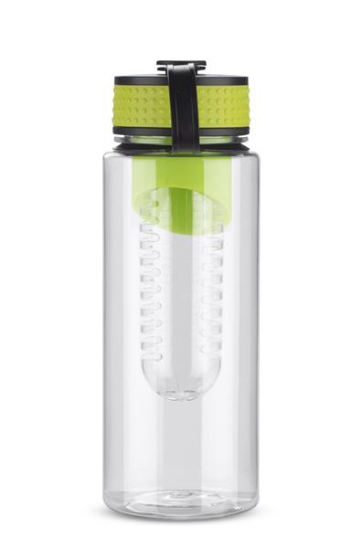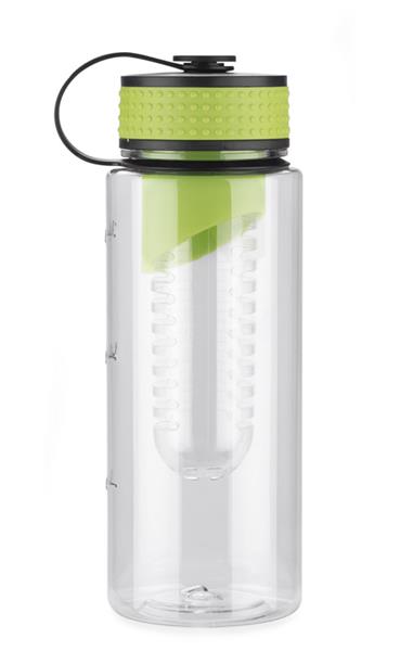 Bidon posiadający wkład na owoce. Pojemność 800 ml. Wykonany z tritanu. Zapakowany w woreczek biodegradowalny.