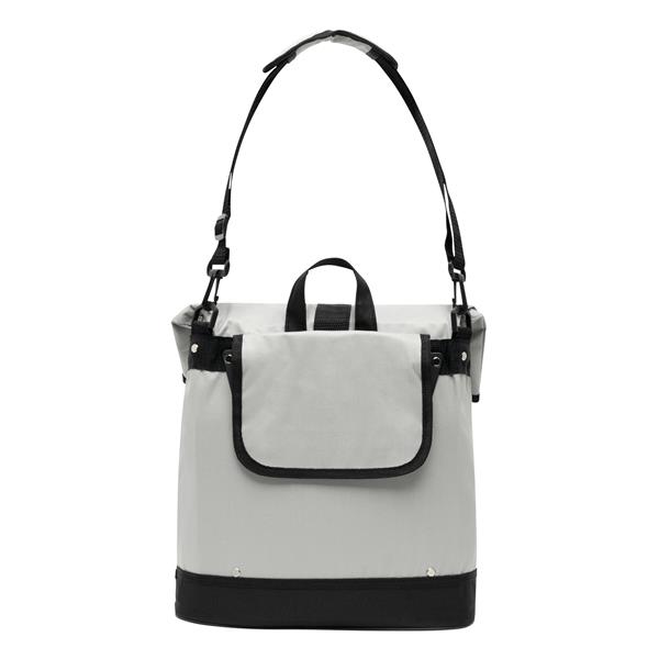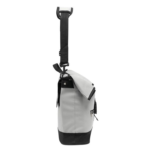 Torba rowerowa BIKE MATE z przestrzenną przegrodą główną z suwakiem i zatrzaskiem, przednią kieszenią z suwakiem, systemem montażu (przykrywanym), uchwytem do przenoszenia, regulowanym i wyjmowanym paskiem na ramię z podkładką.
